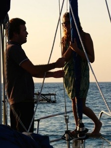 Hoy, a bordo de ANDROS, SEA FURY y SIKKIM, ha sido un día de reparaciones y puesta a punto del barco para seguir con nuestra marcha hacia Kupang. En nuestro caso, hemos reemplazado el cabo roto del lazy jack, poner un parche provisional al genova hasta próxima visita al velero, trabajos sobre la unión del piloto automático y el timón con la ayuda de Rosario (nombre de hombre en Italia) de ANDROS.